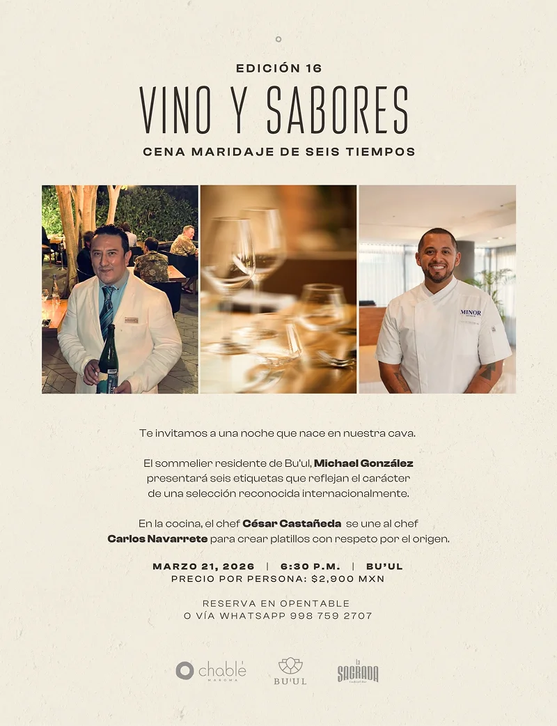 Disfruta de la selección de la casa con nuestro sommelier residente Michael González Chef invitado: César Castañeda César Castañeda Chef Corporativo de México y el Caribe