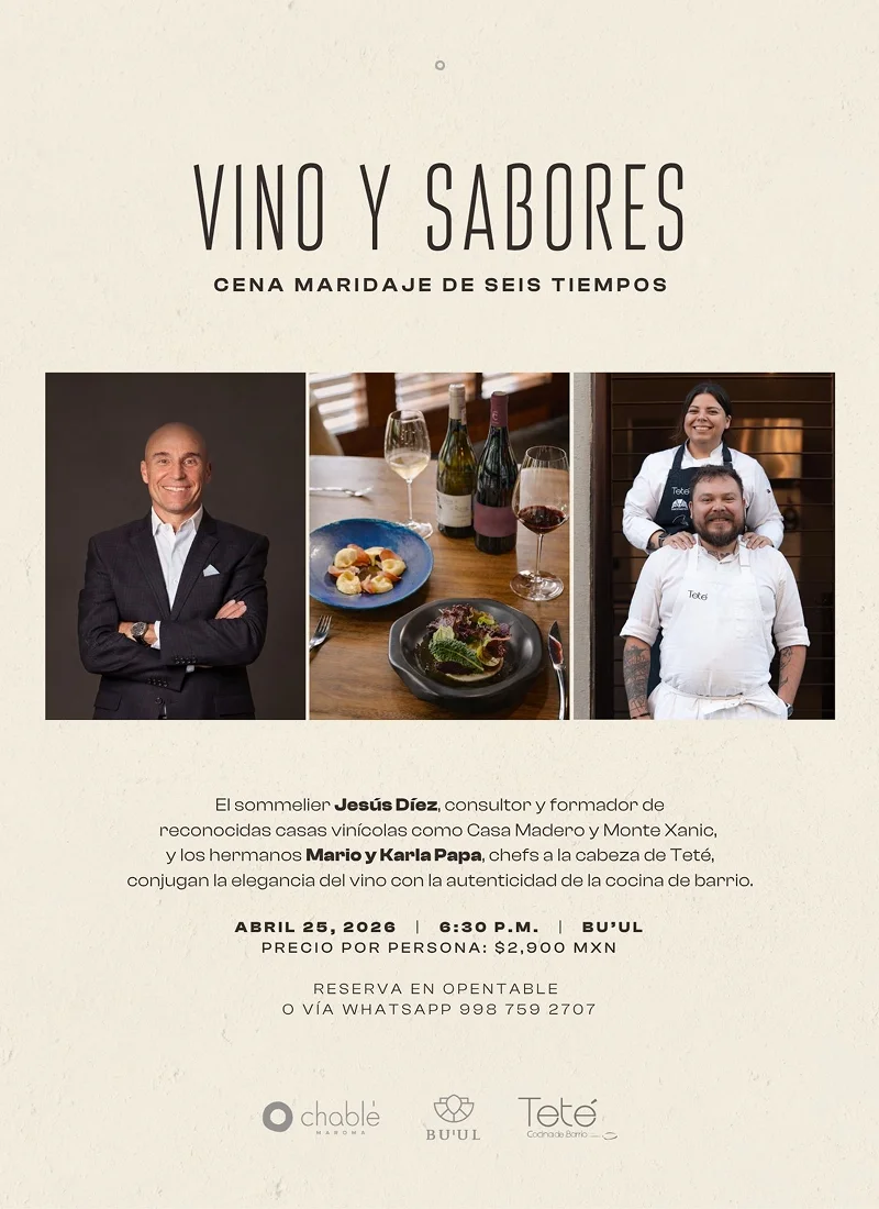 El sommelier Jesús Díez, consultor y formador de reconocidas casas vinícolas como Casa Madero y Monte Xanic, y los hermanos Mario y Karla Papa, chefs a la cabeza de Teté, conjugan la elegancia del vino con la autenticidad de la cocina de barrio.